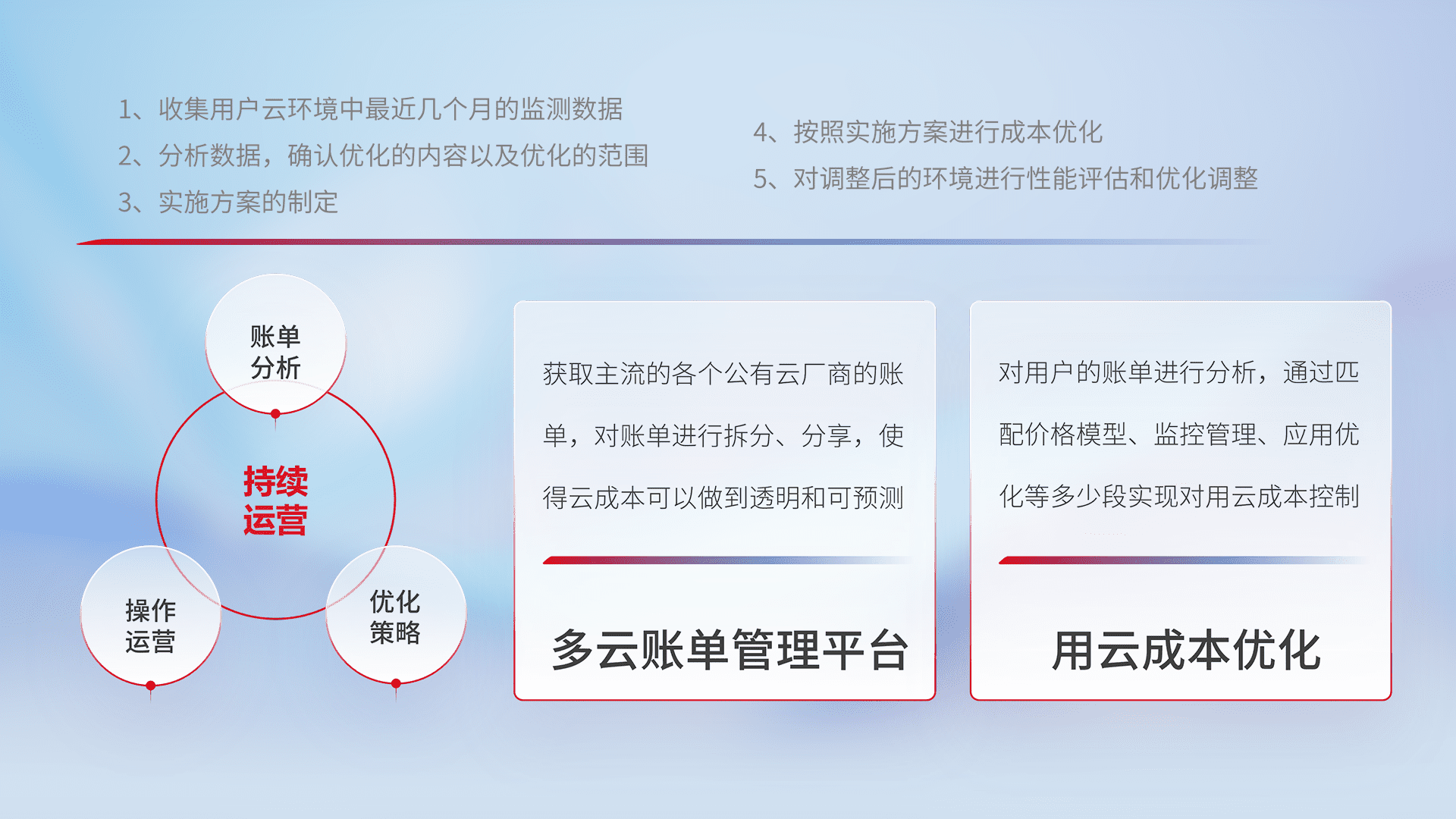 监控业务系统资源开销,,对资源的消耗精确计量,,实现费用的透明化管理,,,不断提升资源使用率,,,调整资源购买方式,,,降低资源费用成本,,,用云成本可预测、、、用云费用可优化,,云资源配额有据可依。。。。
